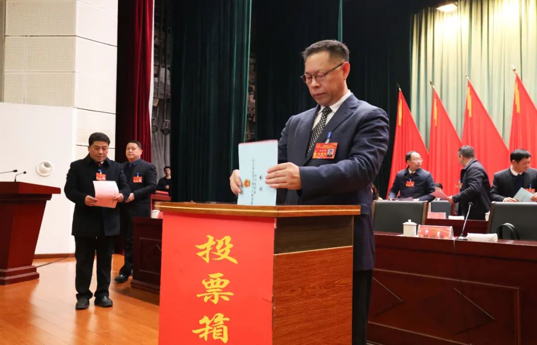 大会表决通过了总监票人、监票人名单,在总监票人向大会报告人数后,选举产生县人大常委会副主任2名、县人大常委会委员5名。