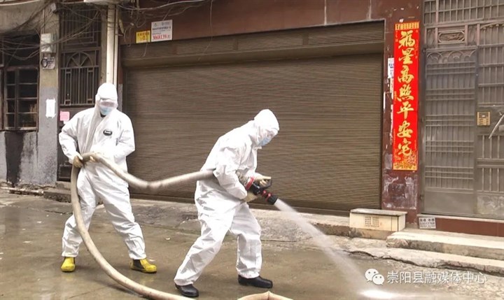 他们还充分发挥消防车的户外作业优势,主动承担起多处确诊病例居民区的室外消毒消杀工作。除此之外,他们还要负责物资夜间看守工作,任务十分繁重。